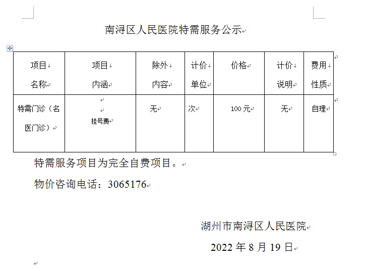 特需門診(名醫(yī)門診)項(xiàng)目公示