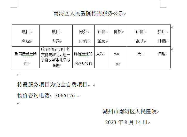 剖宮產(chǎn)導(dǎo)樂陪伴特需項(xiàng)目公示