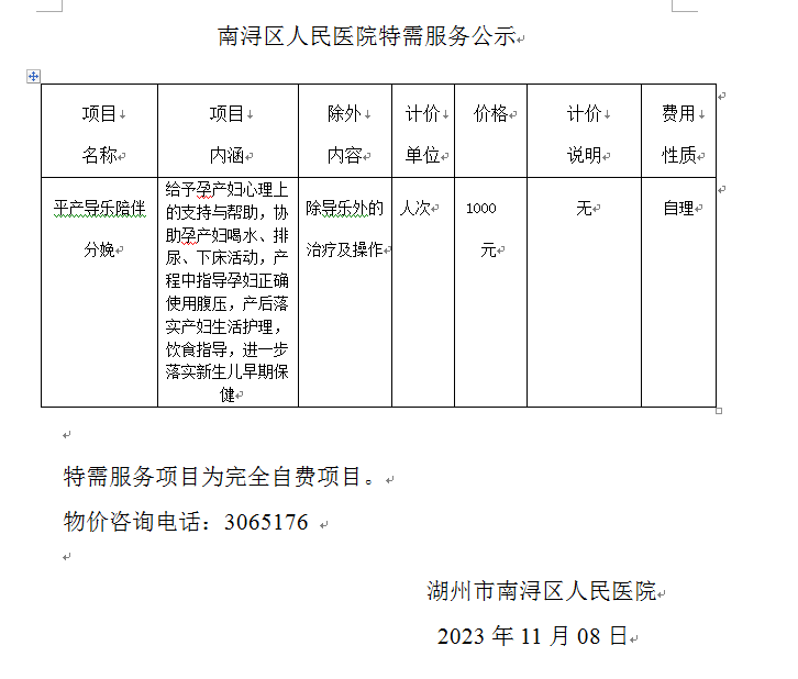 平產(chǎn)導樂陪伴分娩特需項目公示